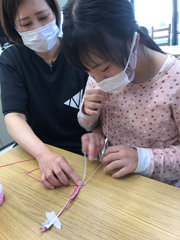 ミシンの使い方や、縫い針の使い方をスタッフと一緒に活動を行うことで安全に配慮しながらレクチャーします。