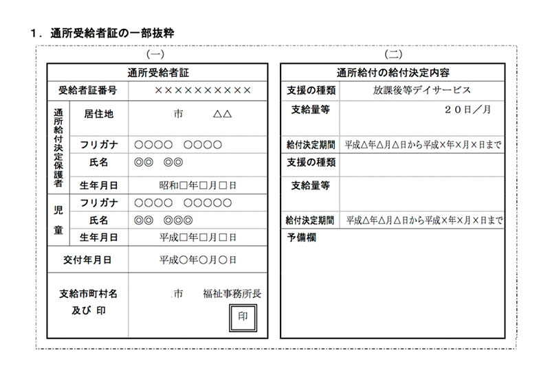 市町村役場からの通所給付決定後、通所受給者証が発行されます。