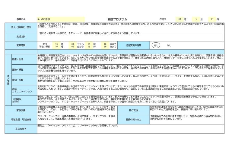 上記に伴い、放課後等デイサービスBe-NEXT、